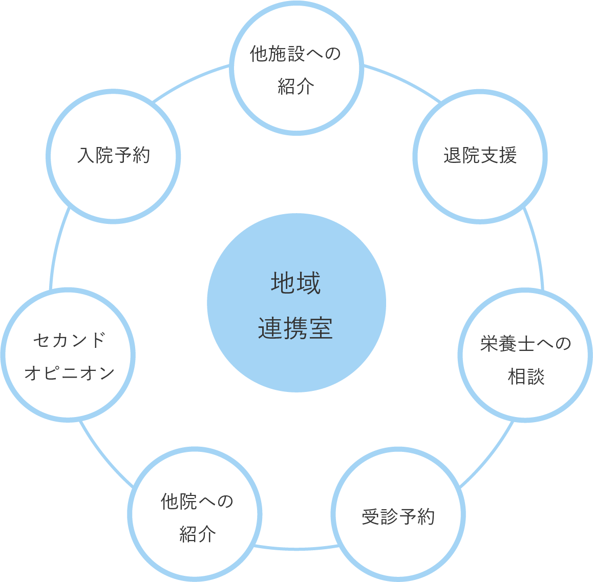 当院は地域連携室を開設し、地域医療はもちろんのこと、介護が必要になった方たちへの多様なサポートまで、一体的に支援する体制を整えています。地域の医療・介護機関との連携、協力を深め、「つしま医療福祉グループ」の一員としてのメリットも活用しながら、地域にお住まいの皆さまからのお問い合わせやご相談に対応します。
